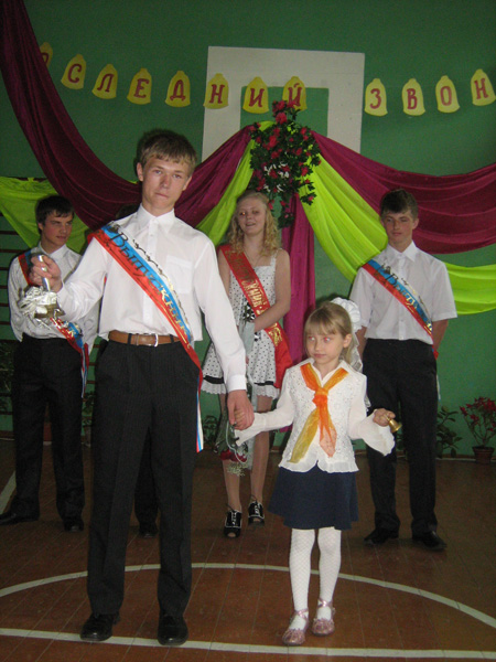 23 мая в школе прозвенел последний звонок для 5 наших выпускников: Колосковой Анастасии, Колоскова Егора, Родина Андрея, Столярова Леонида, Строганова Романа. Вот и закончились девять долгих школьных лет. А впереди целая жизнь! С добрыми пожеланиями счастливого пути выступили директор школы Петрова Валентина Николаевна, классный руководитель Рогова Елена Николаевна, родители. Учащиеся школы подготовили для них небольшой праздничный концерт. Слезы радости и грусти одновременно можно было увидеть в глазах многих присутствующих на этом торжестве. Успехов вам, ребята!